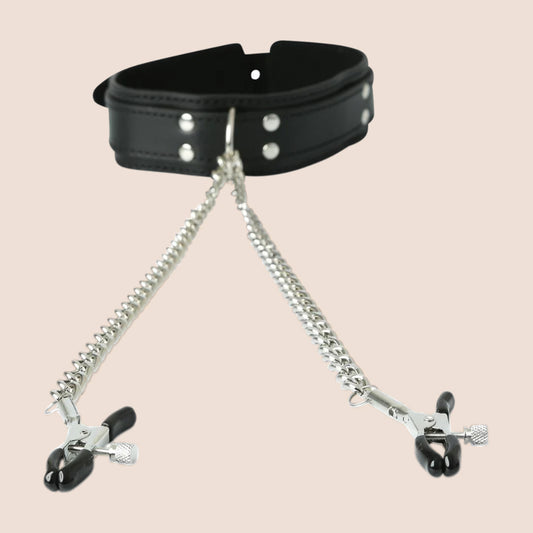 Sex & Mischief Collar with Nipple Clamps | adjustable buckle closure