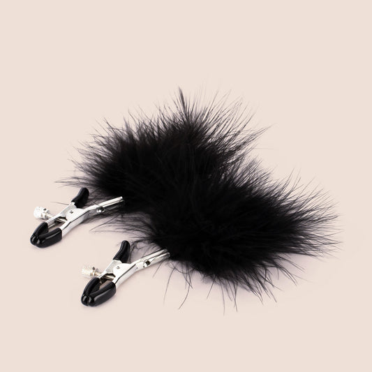 Sex & Mischief Feathered Nipple Clamps | thumb screw adjustability