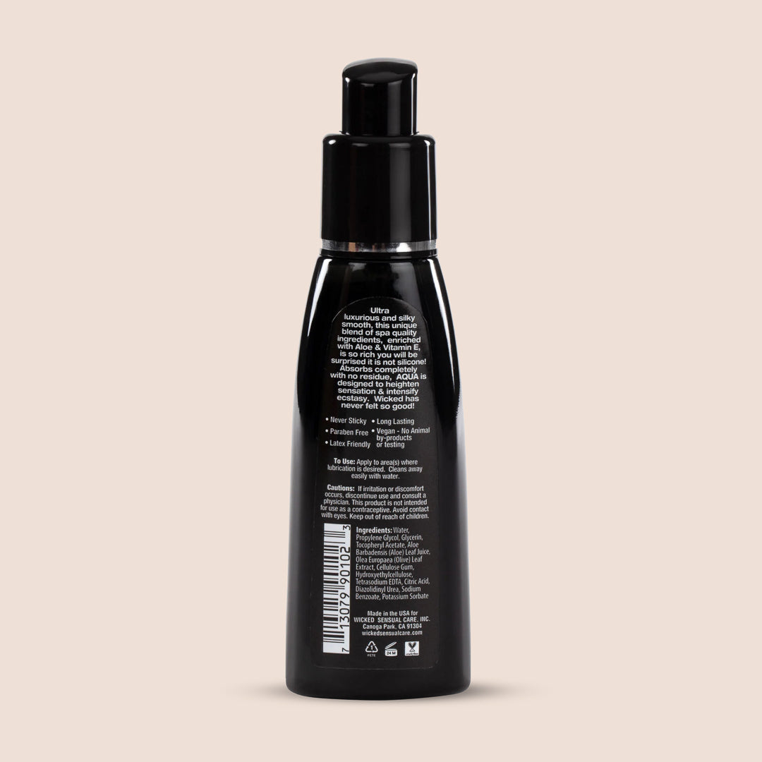 Wow, very thin, water based lube that I was skeptical of at first, but Wicked Aqua gets the job done nicely. My roommate hates those lubes & lotions that she can't clean off quickly (who else hates lube all over everywhere...hands, hips & eventually sheets?), but a quick wipe on a damp washcloth cleans her right up and she's quickly thrusting into me again. Extended periods of fun may need a few re-applications, but overall a great product.
