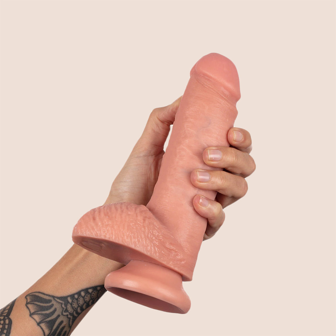 My girlfriend was happily surprised when I showed her this nice cock, but was a bit intimidated by the size & girth. I was expecting more of a real skin feel, seems more like rubber. However with enough lube and foreplay with a smaller dildo, she warmed up and took it balls deep to a spectacular orgasm. This is the new go to for us, with wicked ultra heat lube it sets her on fire.