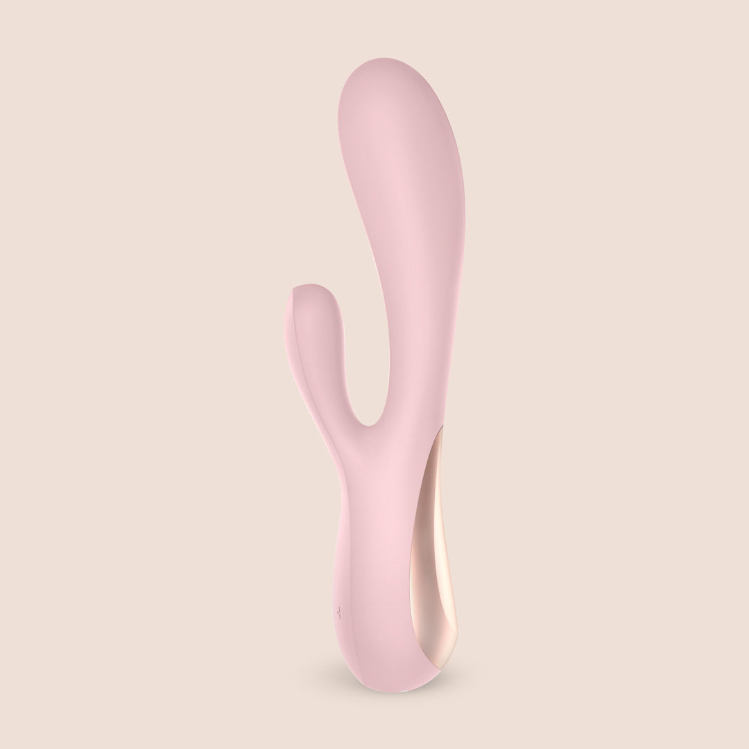 The Satisfyer Mono Flex Rabbit Vibrator stimulates both the clitoris and G-Spot with sensual vibrations – also via app control! The rabbit vibrator is made of high-quality, flexible silicone, which adapts smoothly to your contours and transmits intense vibrations to your hot spots. The vibrations can be controlled intuitively via the control panel or the free Satisfyer Connect App. You can control the Mono Flex remotely via the app and can also create new vibration programmes or link the vibrator with your favourite playlist on Spotify. The possibilities are endless!