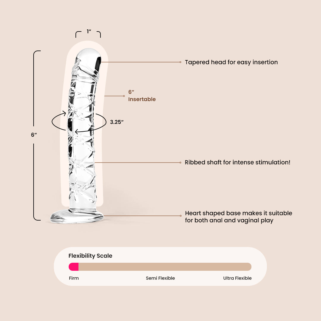 This was my first purchase of a glass dildo. It looks beautiful and feels quite nice. You can feel all the curves and ridges, it was quite interesting. I think my fiance loved using it on me as well ;)