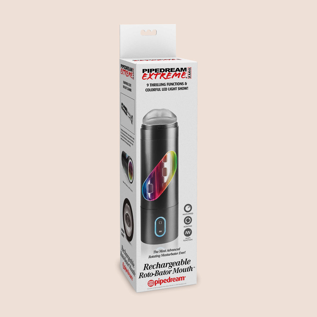 Husband absolutely LOVES this Rotobator Mouth! I love the changing lights and waiting for him to reach 'lift off'. Have also bought the Rotobator Ass. Just wish you could order more of the nubby sleeves since they sometimes shred from repeated use. Sometimes I help the Rotobator along just so I can hear him moan with his release!