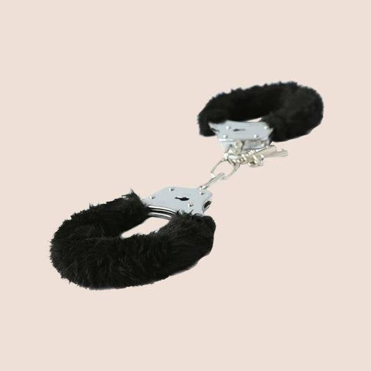 Sex & Mischief Black Furry Handcuffs | nickel-free metal