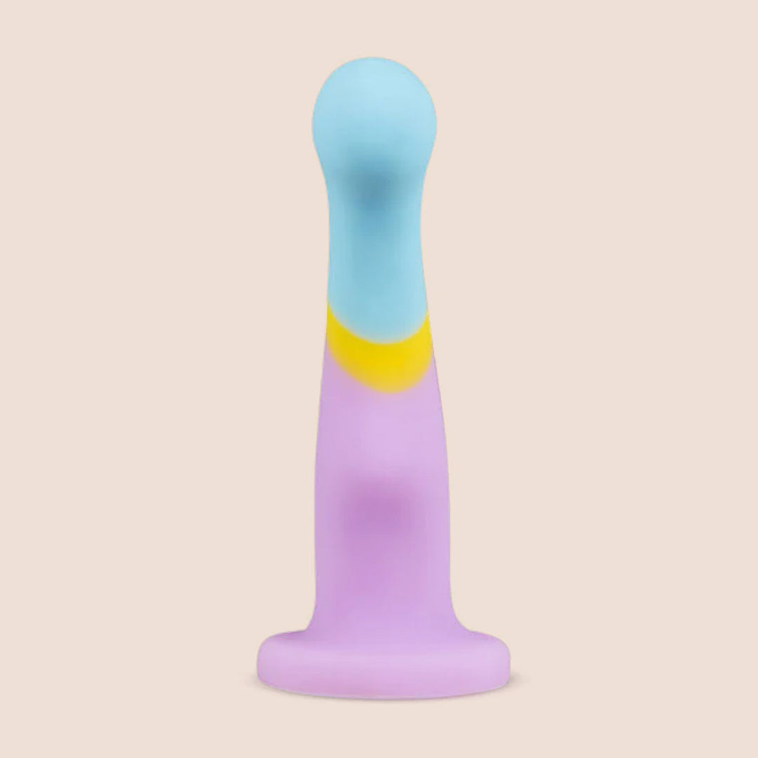 Modern, stylish, and beautiful—meet Avant. The Avant D14 Heart of Gold dildo is body safe and made from platinum-cured silicone. This dildo has suction capabilities and is soft, yet rigid enough to remain erect, even while attached to a surface. The vibrant pink, blue, and yellow block pattern on this dildo is so eye-catching that you might be tempted to display it as home décor, but the most impressive feature of this dildo isn't its color - it's the silky smooth texture that makes for more comfortable use.