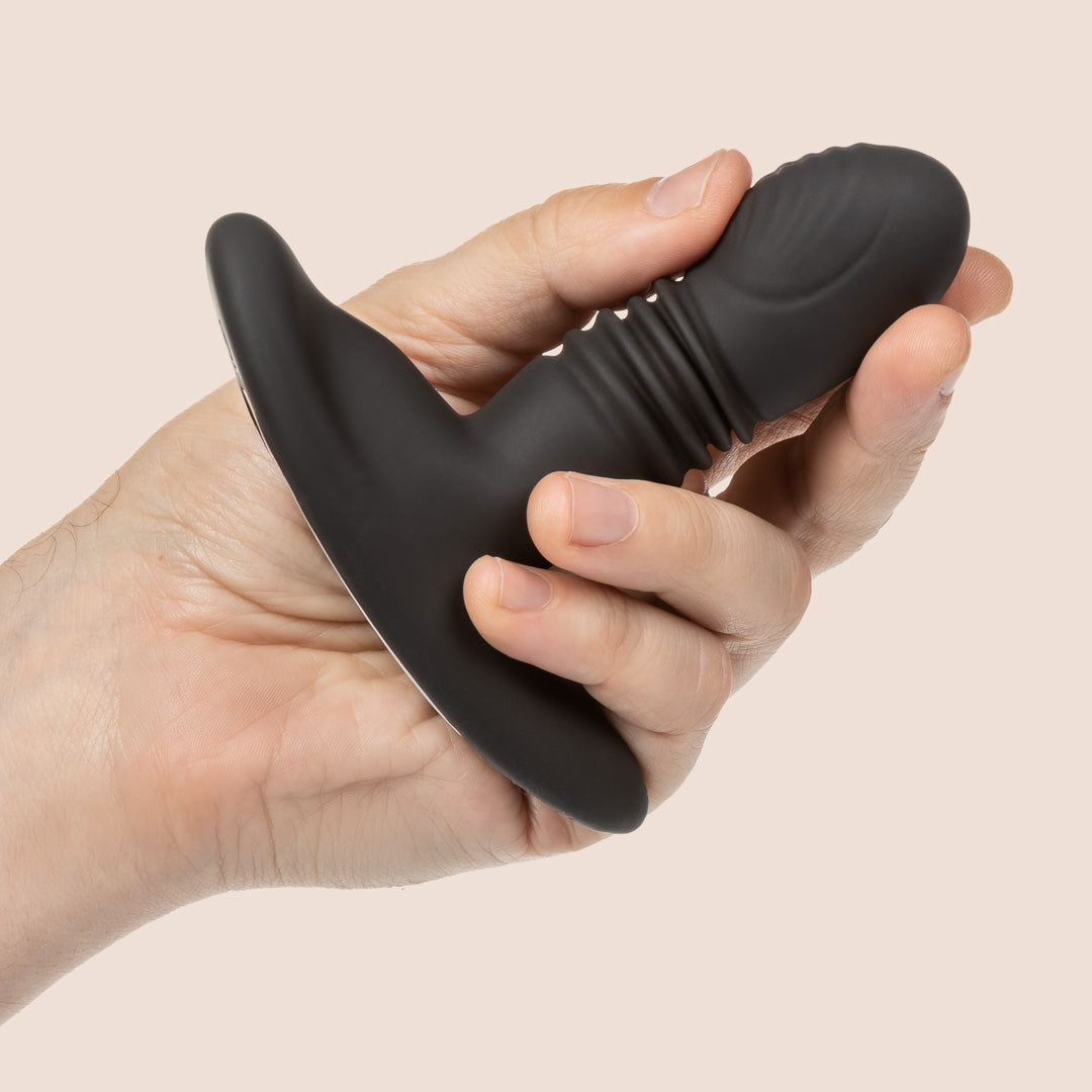 Choose your intensity and let the synchronized rotation, vibration, and thrusting take you on a journey of internal bliss. The sensual curved shaft, contoured base, and easy-push controls make for effortless stimulation. Plus, two vibration motors in the shaft and base add even more rumbling goodness to your backdoor fun. And with a flexible design and gentle ergonomic shape, insertion and removal is a breeze.