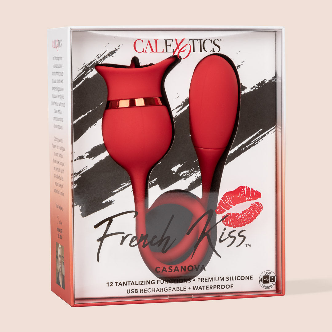 Get ready to pucker up, because the French Kiss™ Casanova is here to turn up the heat in the bedroom! This sensual little teaser is packed with power, featuring a flickering tongue and a vibrating bullet that'll make you see stars. With 12 functions of vibration and dual vibe motors, you'll be shaking in ecstasy with every flick of the tongue.