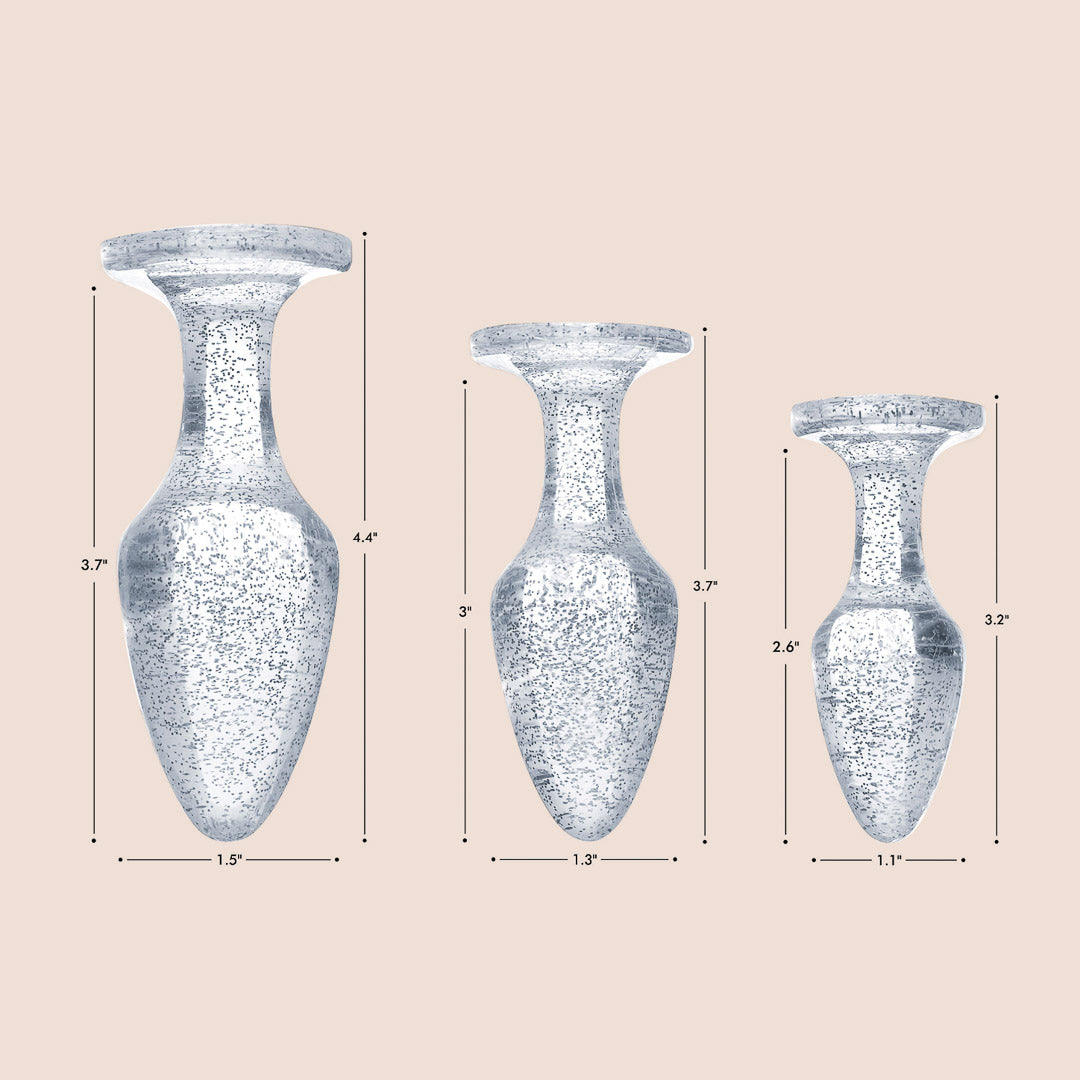 Start slow and steady with the smallest size. Let your backdoor get acquainted with this sensational sparkler. With its tapered tip and slender body, it's the perfect introduction to the world of anal play—no discomfort, just pure pleasure! And when you're ready, go big and bold with the medium and large sizes. Take it at your own pace, because your comfort is key.