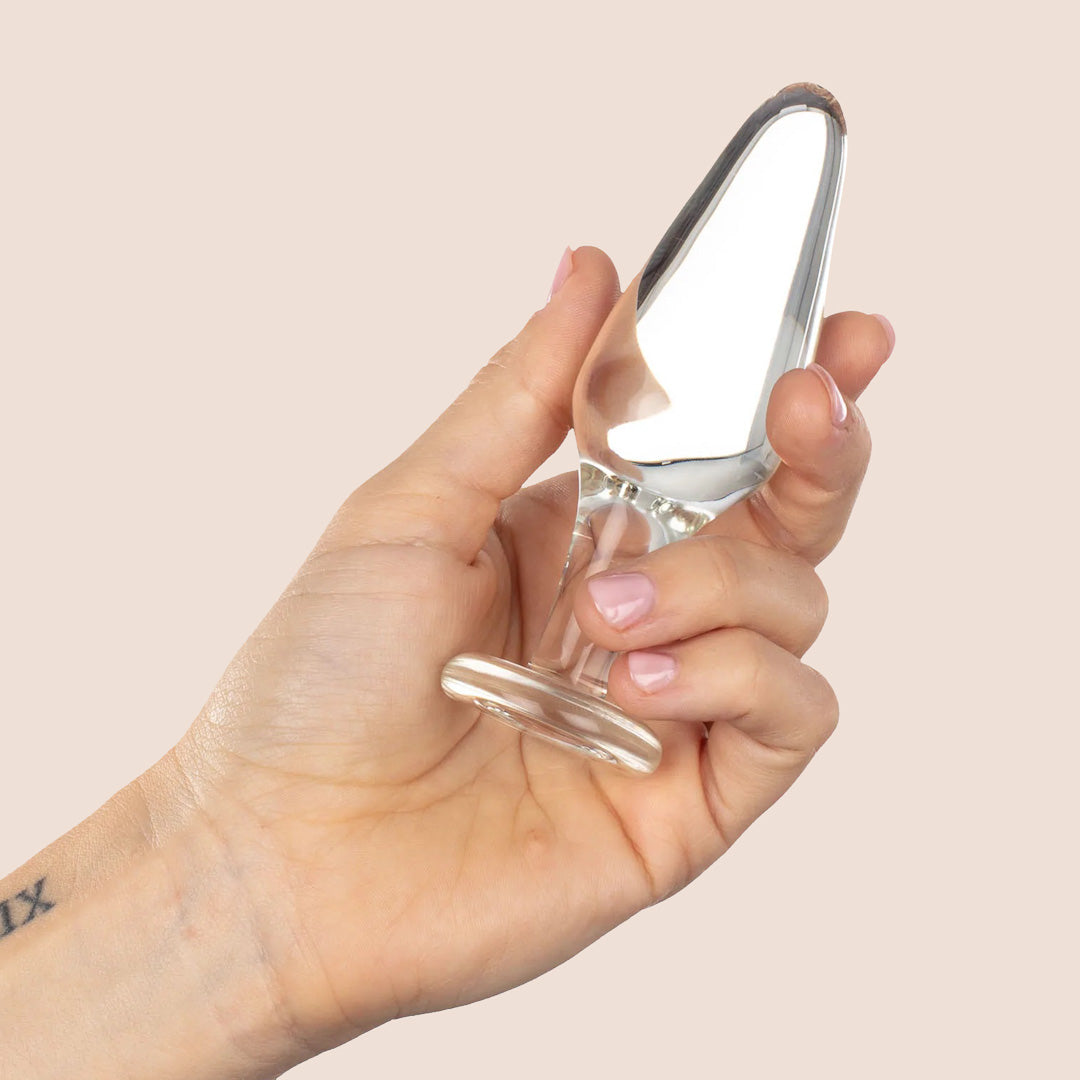 The No. 26 was our first anal toy and it has worked out very nicely. This is great for beginners who are ready to go beyond fingers and oral stimulation. The 1 1/2 inch diameter is the perfect step up from using a finger or a thumb. It took time at first but with plenty of lube and patience it went in. We use it regularly in the bedroom and almost always for double penetration. We have never had an issue with the plug getting sucked inside and it only falls out during rough DP. I would not reccomend this product for all day or prolonged use outside of the bedroom. Silicone is best for extended time and movement.
