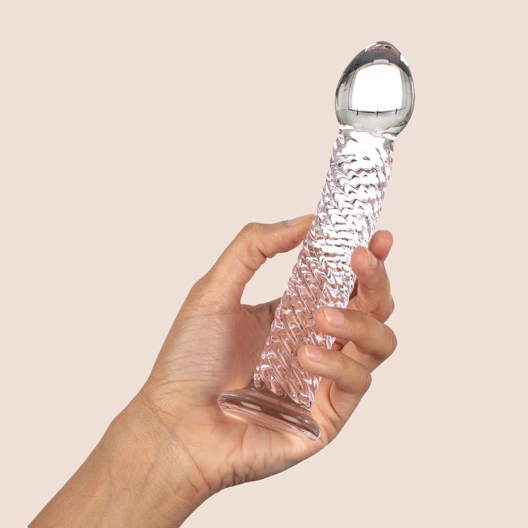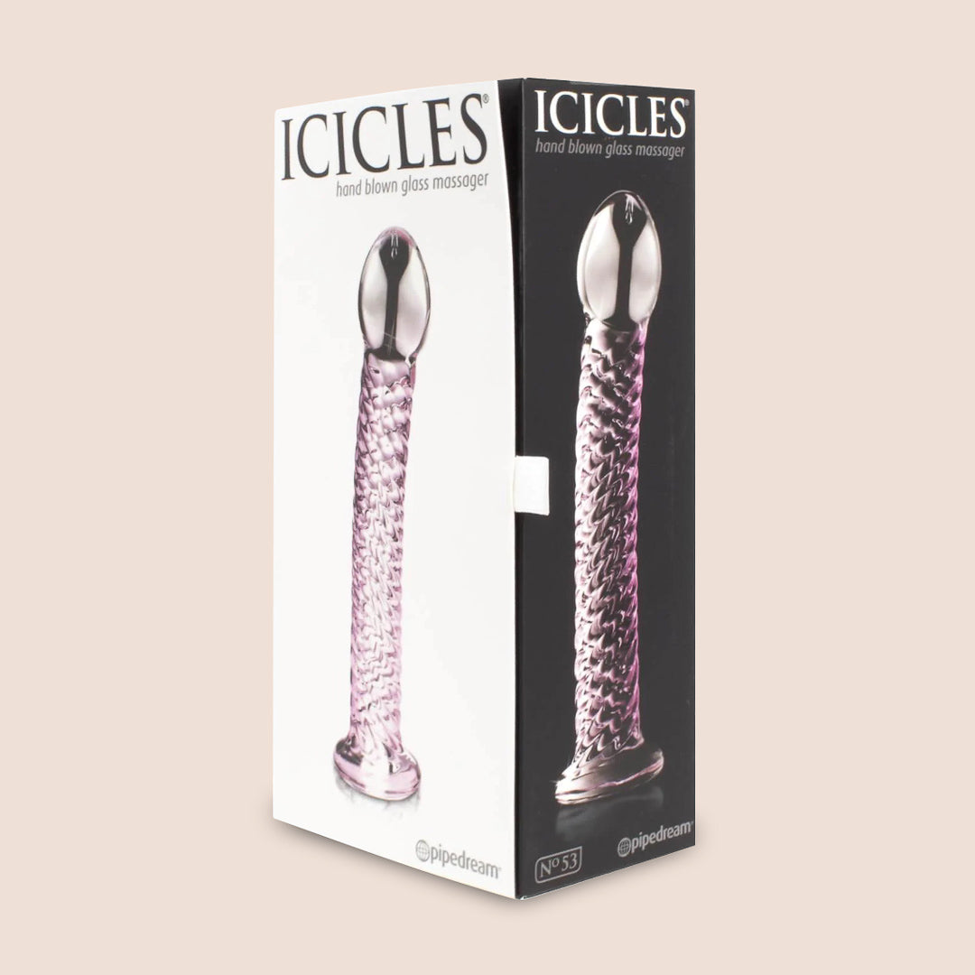 The icicles thick tipped glass dildo was my first experience with glass. The thick tip should be lubriated to make insertion easier. I warmed it in the microwave which gave it a nice feel once inside my pussy. My husband watched for awhile and then eagerly assisted. The ripples sliding in and out felt so good on my pussy lips and deep inside me. I came so hard as my husband gently then quickly rotated this hard beauty in and out of me while I quivered by squirting my love juices. After riding my husband's cock to a second orgasm I gave glass magic another ride. This time I put it on a solid surface since it has a nice flat base. This allowed me to control it with my wet cum soaked pussy. I used this 5 times the first 3 days I had it. It also allows my husband to use his tongue on my swollen clit. How heavenly! This was a wonderful purchase. Get one for a good time!