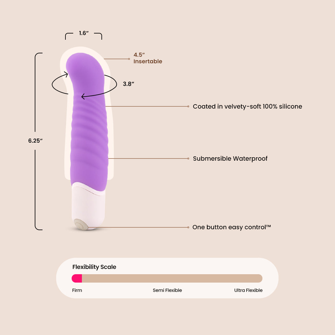 Hi, I would give a positive review on this lil friend even without rebate-type incentive! First off, I really appreciate your website design. Clean, clear, easy to browse, great images, and the videos are cute too. The site gives an overall aura of confidence in the products and your commitment to quality goods, and customer service. In my opinion anyway. Yours wasn't the first website I looked at in my search but it was the only one I purchased from, or am likely to purchase from in the future. The Vedo itself is a wonderful addition to anyone's toy chest. For me the width is perfect, not intimidating or challenging, just a nice easy slide. The power button on the top is perfectly placed, and easy to click whilst in the moment. Twelve settings seems like a lot, but once you go through them, and you find the perfect one'oh yes. Quiet, just like the description promised. The material of the vibrator is neat too, soft, stays cool, but not cold at all. The texture does not scream 'I'm a dildo!', more like whispers, 'I'm your lil lilac friend, here to help you relax.' The ribs are nice, adding to the overall experience. It's easy to clean too thanks to being waterproof. Also, bathtub fun! I would highly recommend this item, it has my full and enthusiastic endorsement. Thanks!