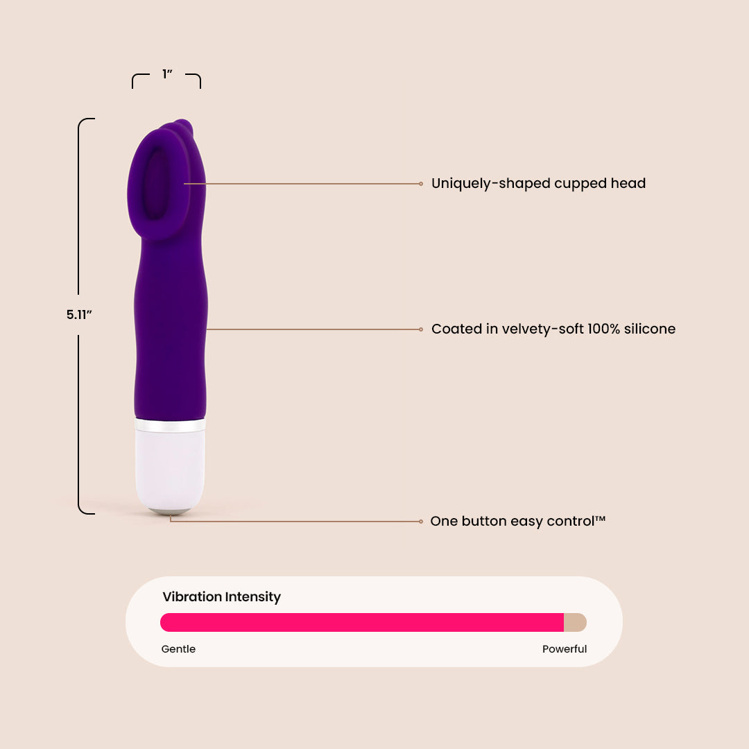 Ladies I love this little toy, my husband who is always looking for ways to keep me satisfied purchased this mini vib. When our order arrived he hand me this purple box along with a AAA battery which I looked at him and called him a Jack Ass in a romantic way, to my surprise it didn't work. I handed the toy back to my husband and he tried several other batteries. Now try to image the look on my husbands face when I told him that he purchased a broken toy so no yum yum for him and than I ran my index finger along the length of my yum yum and than sucked on my finger. My husband immediately looked up a contact number for Simpli Pleasure Customer Service and made the call, a very nice lady named Jovi Reyes was able to assist my husband and instructed him to make a video of the toy and explain the problem that we were experiencing, once finished he was to forward that clip to her which he did. My husband received a thank you email from Ms. Reyes and that we should have a replacement within 3 to 5 days. Ladies within two days my replacement Mini vib arrived, that evening once I finished my shower I told my husband to get his shower and than we would call it a night. I heard my husband start the shower and that was my opportunity to play with my yum yum using my new mini vib that I had tested after opening the package, Gawd this is a powerful little toy. Ladies I was able to bring myself off I think 3 times before my husband walked out of the bathroom, from the reaction on his face and his manhood that was heading north it turned out to be a very very relaxing night with a very large wet spot on the sheets, mama got her groove on thanks to my Vedo Luv Mini Vibrator.