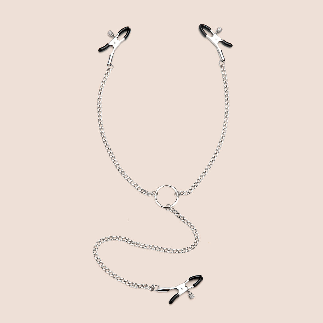 Turn up the heat and dress to thrill with our tantalizingly kinky body jewelry set. This little gem is guaranteed to excite both you and your lucky partner, whether you're flying solo or engaging in some steamy couples' play. Brace yourself for an explosion of pleasure as the specially designed clips work their magic on every erogenous zone you can think of. And hey, we've got your comfort covered too – each clip is coated in smooth rubber for that perfect pinch without any pesky discomfort. Get ready to unleash your inner seductress and take your pleasure to new heights with our irresistible body chain. Satisfaction guaranteed, wink wink!