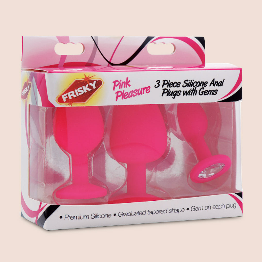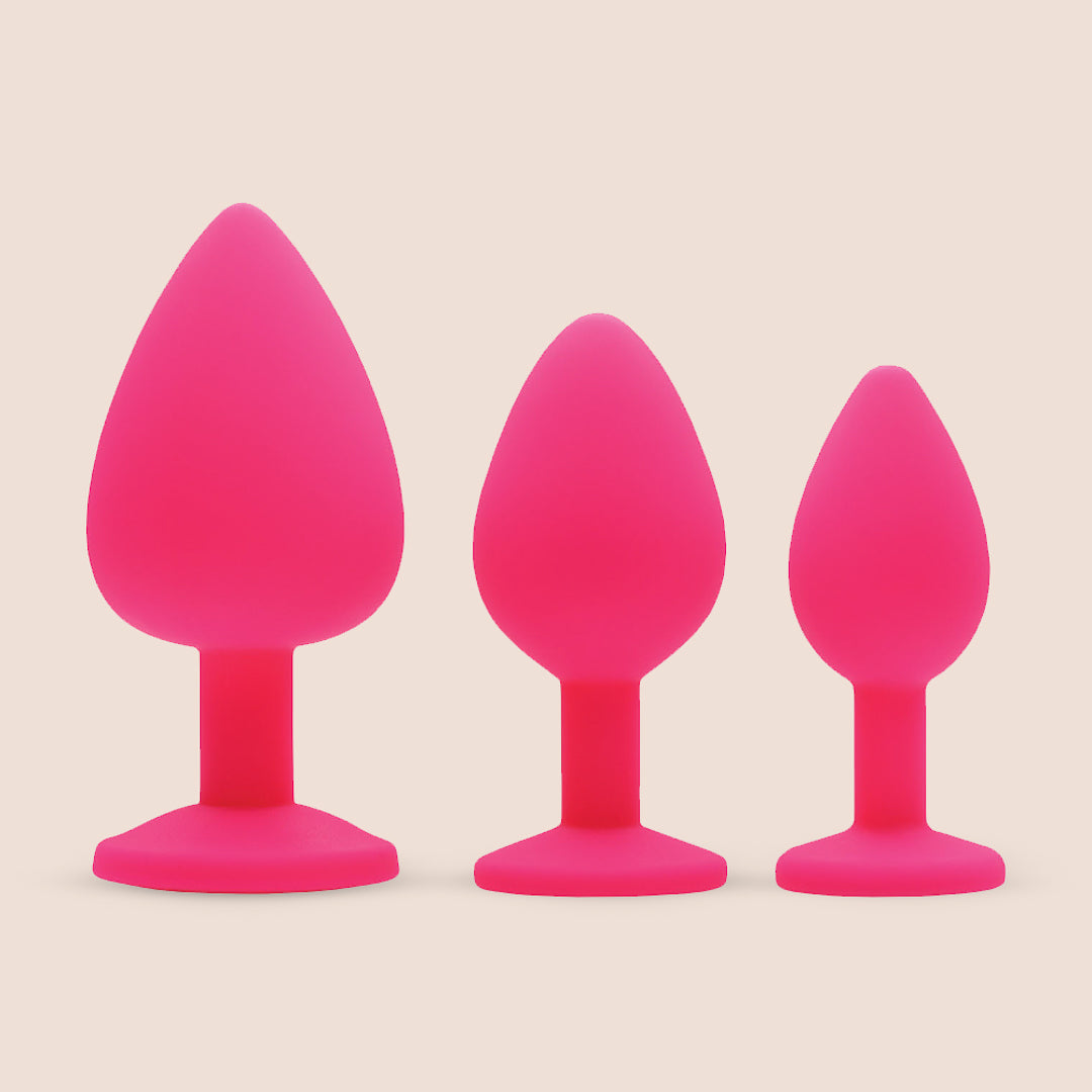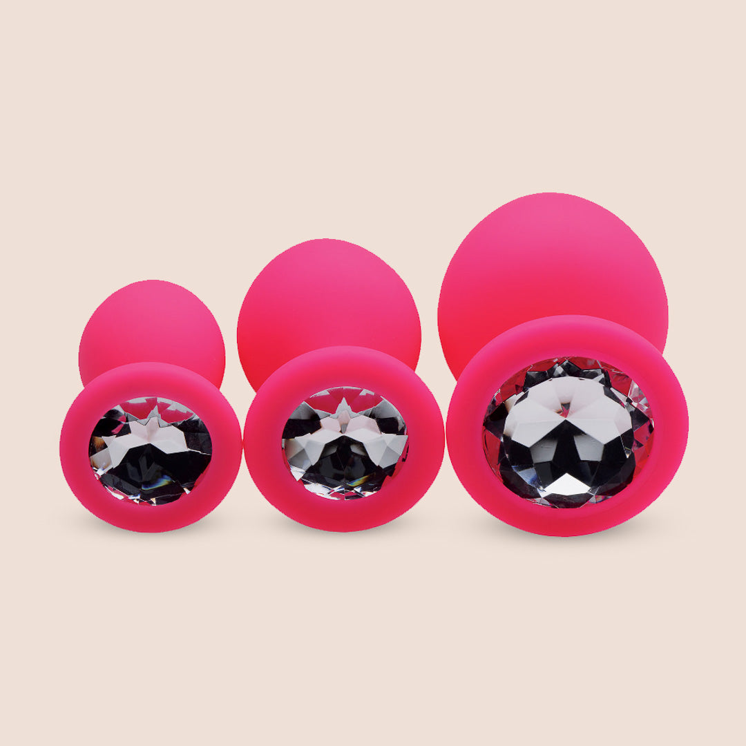 3 piece silicone butt plug setPink Pleasure Anal Plugs With Gems | 3 piece silicone butt plug set