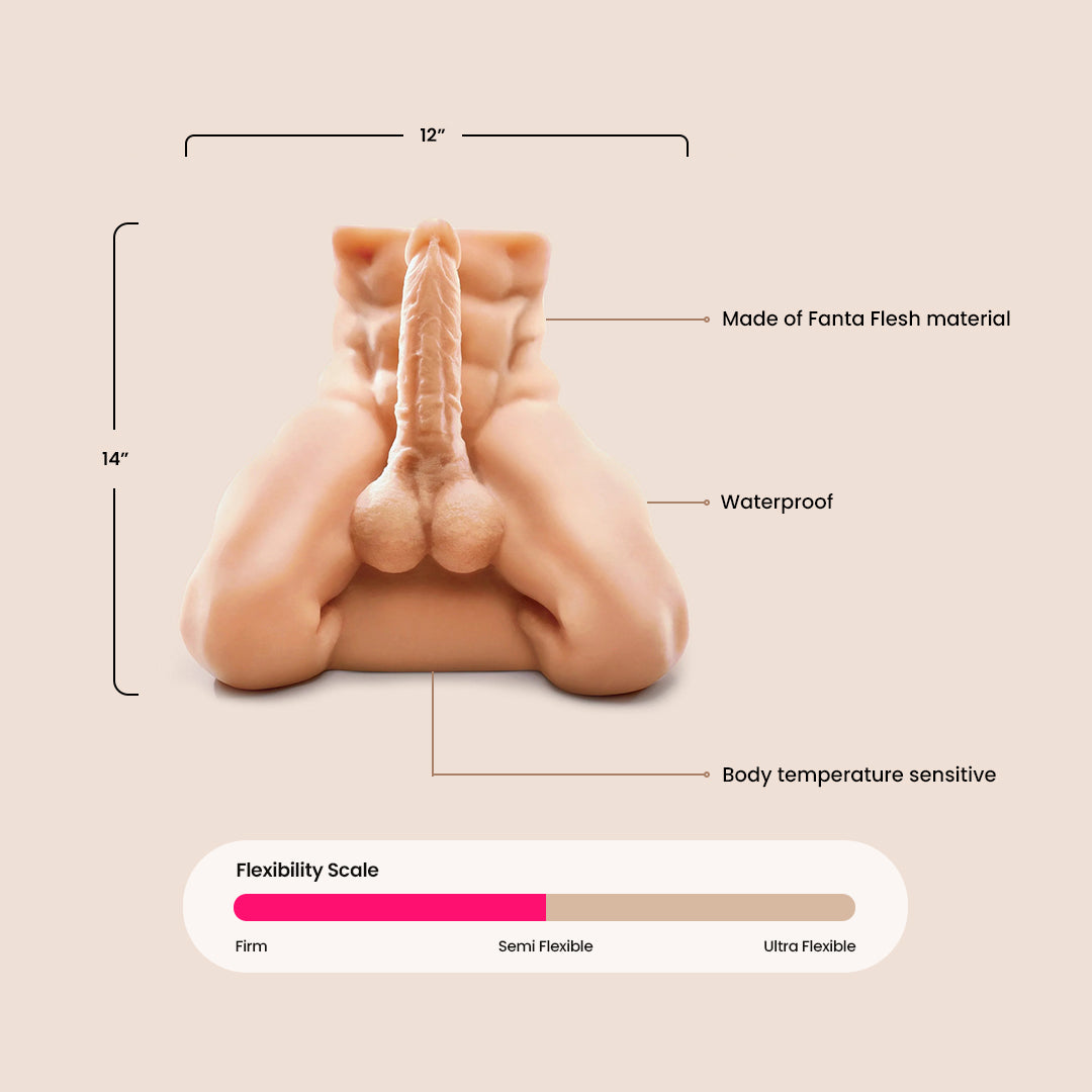 Grab hold of his thick, flexible c and guide it up inside you. The soft, supple Fanta Flesh material warms to your body temperature and feels just like the real thing'“only better! This hunky heartthrob never goes soft or limp right when you're about to climax. Say goodbye to those midway letdowns forever. He's always ready to dish out a dick-down you'll never forget! Every lifelike detail of this shredded dude is molded after a ripped jock. Bring him in the bedroom with you and enjoy an unforgettable threesome with your rock-hard lover. You won't feel guilty about bringing another person into the mix, and it's a lot safer!