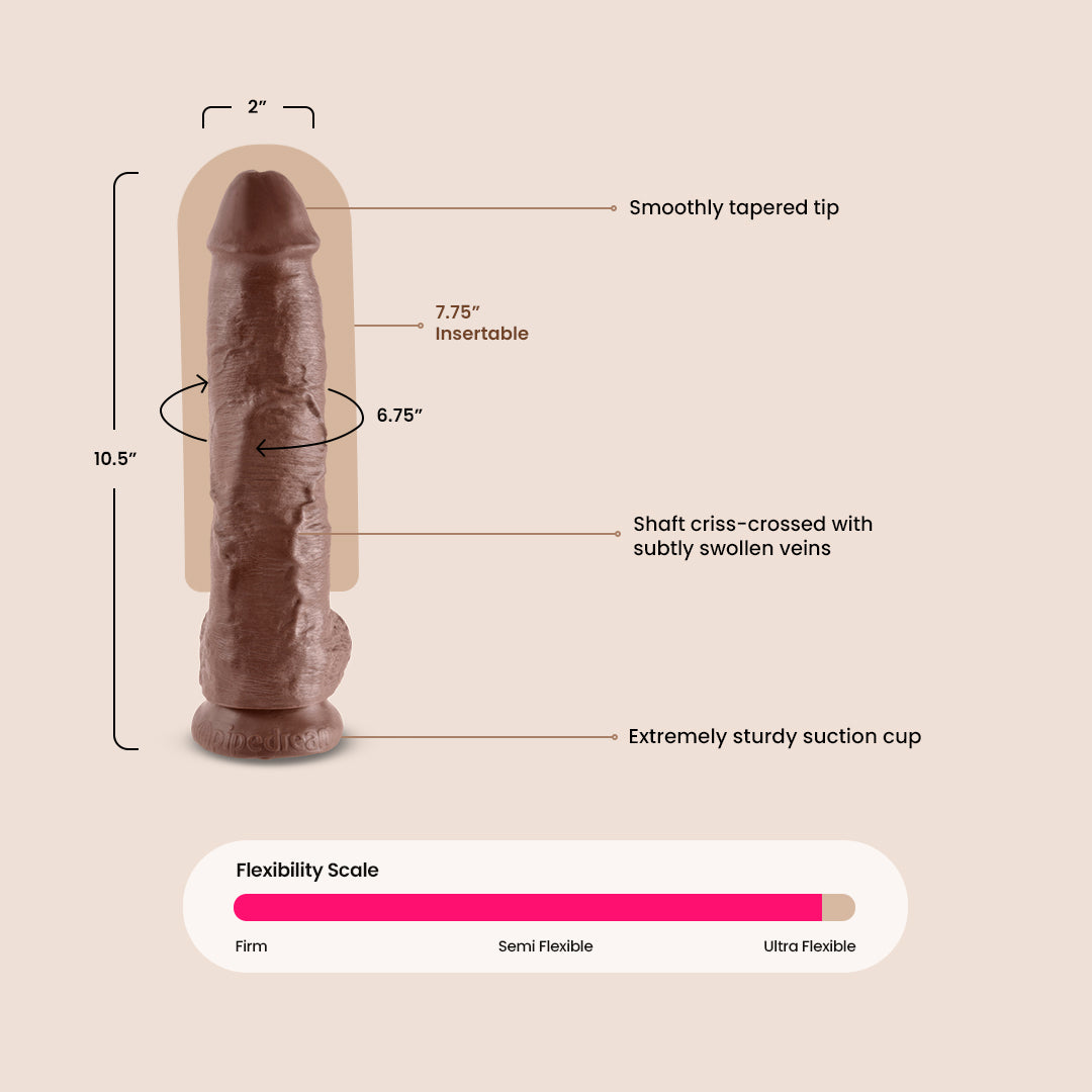 The girth of this dildo is so perfect, it's sturdy yet flexible, it's head so easy to manage at the beginning of playtime.