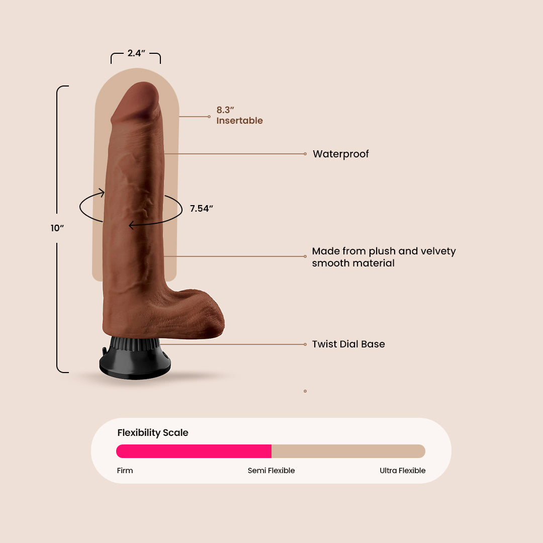 This darn thing was way bigger than I expected! We have the 8 incher and so I thought it was just going to be 2 inches longer but it's much much thicker also! It's really huge! Not sure if the wife is even going to let me try it on her!