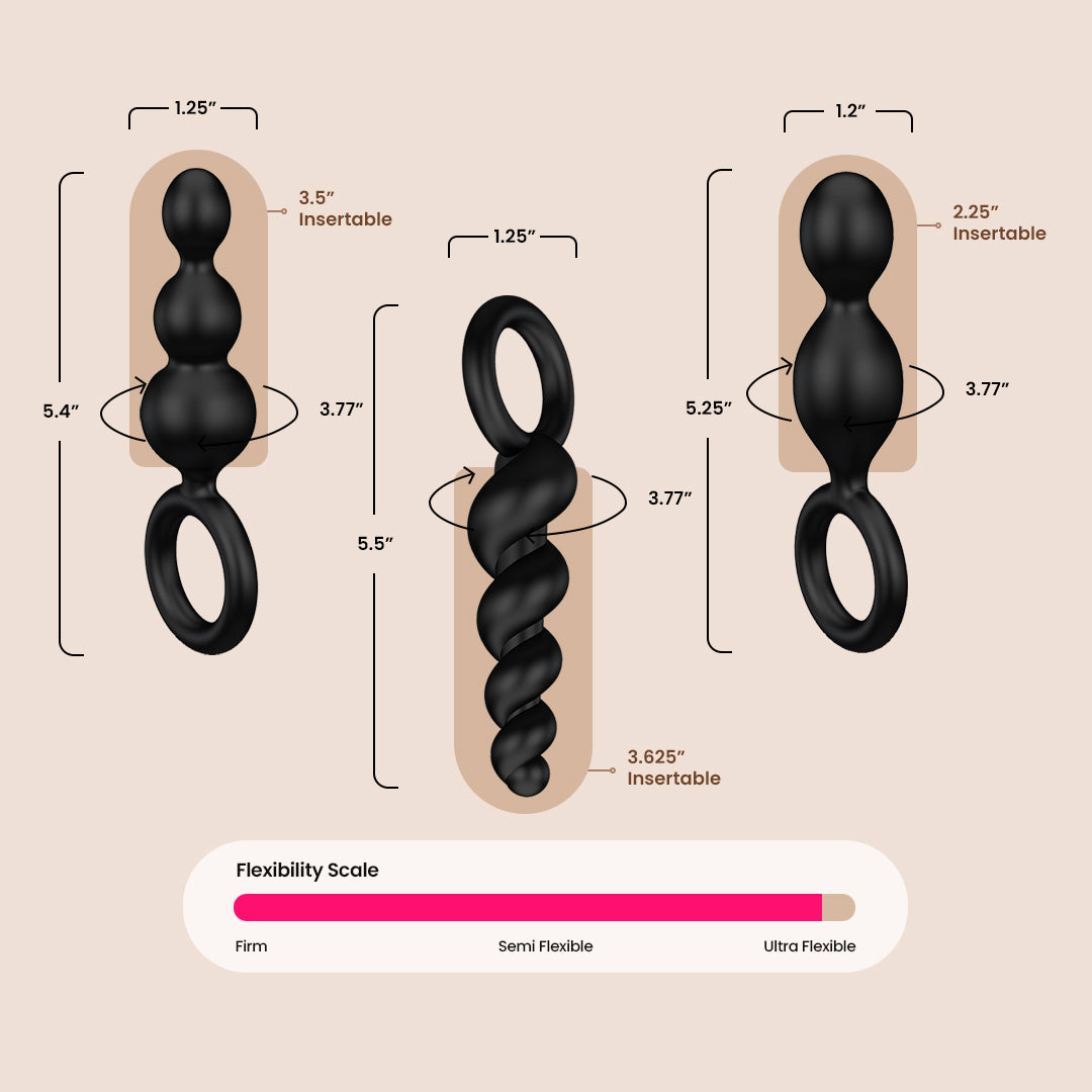 This product is perfect for those beginning to experiment and play. Three separate sizes and shapes really helped us ease into the process. Great product for an affordable price. Can't go wrong buying this product and I highly recommend these plugs to be added to your toy box.
