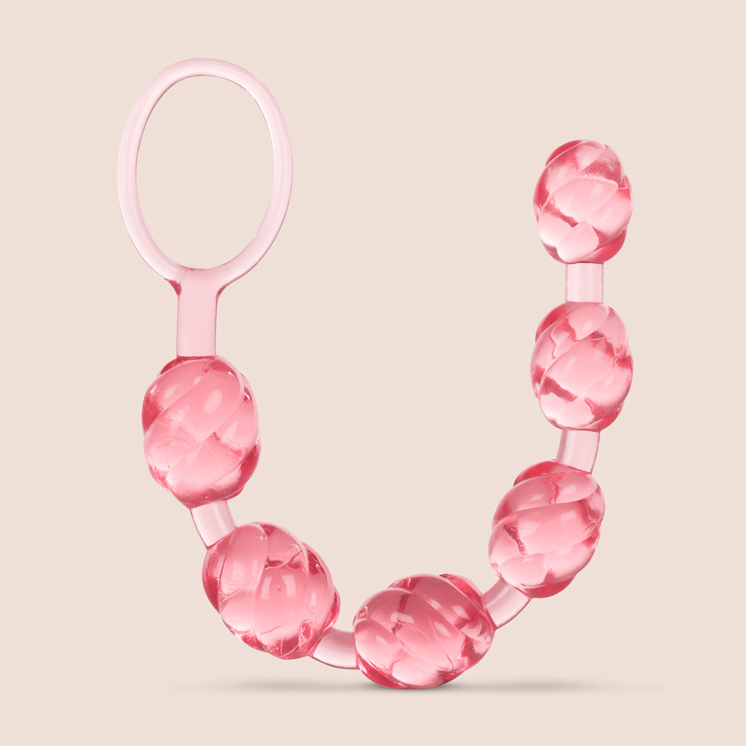 These beads were much bigger than anticipated although I this is my first go round with trying anal beads. The whole strand of beads is 8 inches in length which is a bit intense. They have a textured finish and appear to be well made. They are hard beads and they don't have any give to them so if you are expecting something maleable I recommend trying a different product. All in all a pretty good product and they do the trick. I just can't imagine wanting to go much bigger.