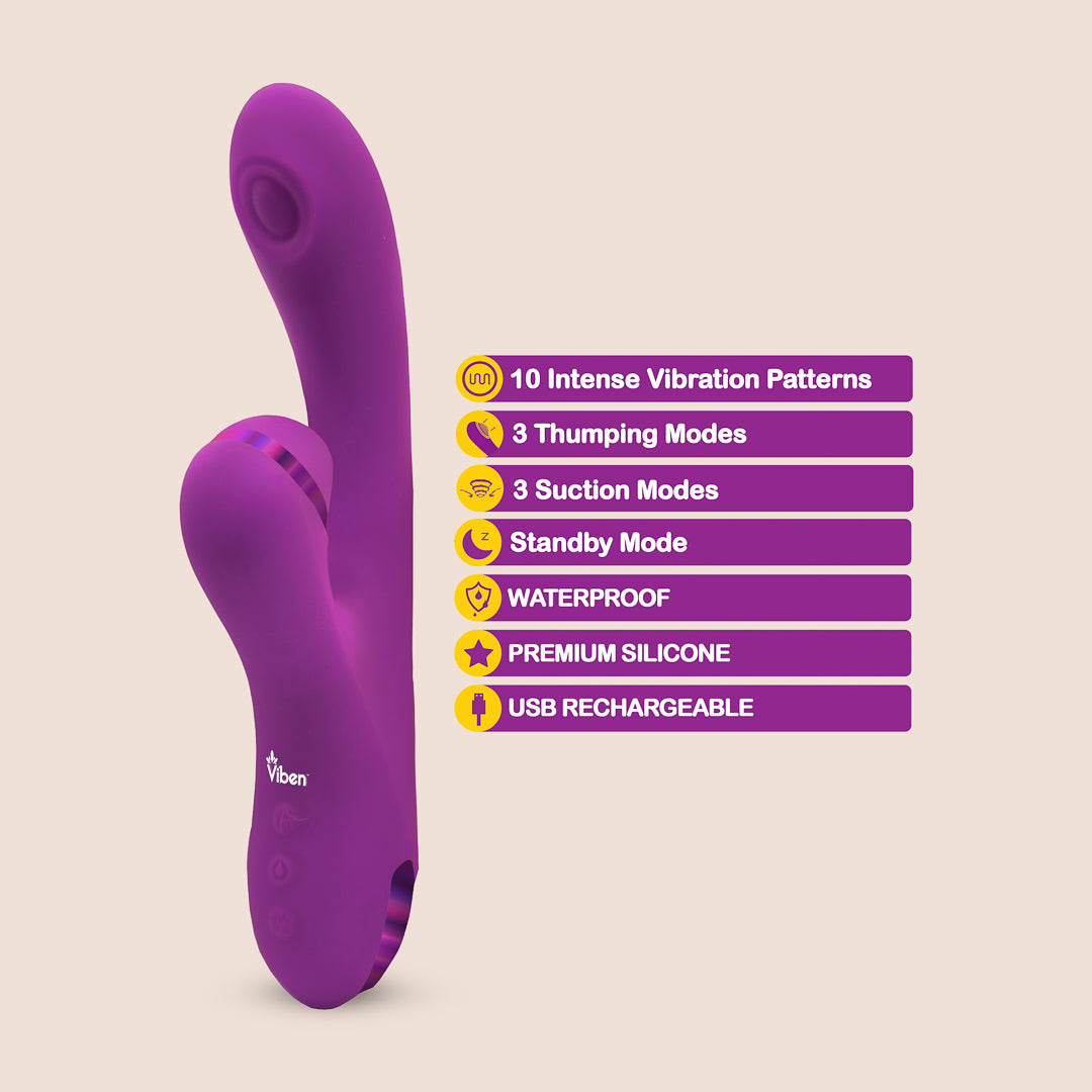 thumping and suctionViben Dazzle Rechargeable Rabbit Vibrator | thumping and suction